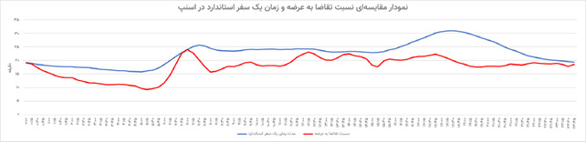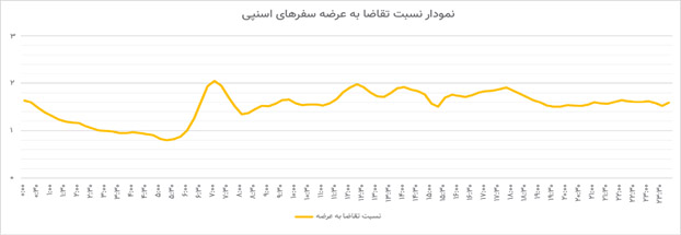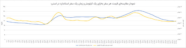 تحلیل نسبت تقاضا به عرضه نشان می‌دهد که مانند سال گذشته، نرخ تقاضا در ساعات ابتدایی روز سریع‌تر از عصر افزایش می‌یابد، اما در ساعات پرتردد عصر مدت‌زمان صرف شده در ترافیک بیشتر است. به این معنی که عامل اصلی نوسان قیمتی سفرها در ساعات صبح به‌ نسبت تقاضا به عرضه و در ساعات عصر بیشتر به‌ حجم بالای ترافیک برمی‌گردد.